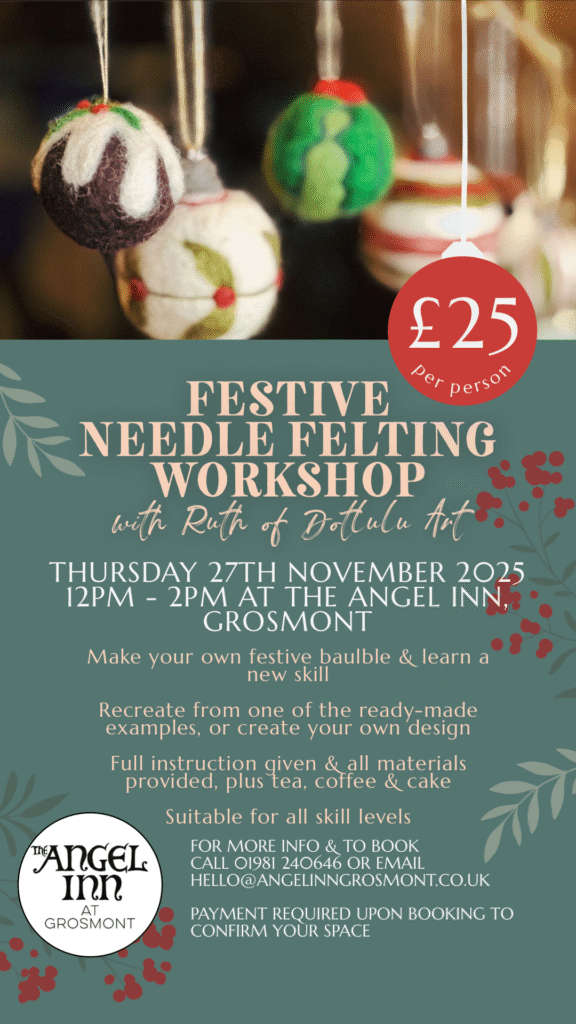 Please don’t hesitate call us on 01981 240646 or email hello@angelinngrosmont.co.uk with any query or enquiry