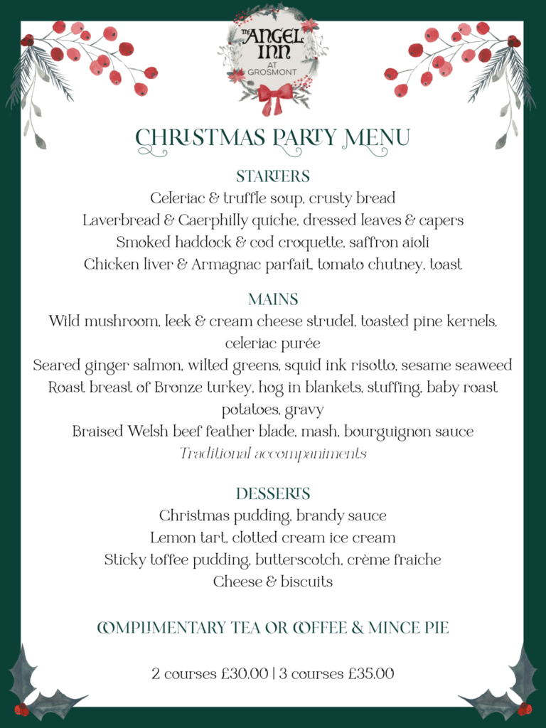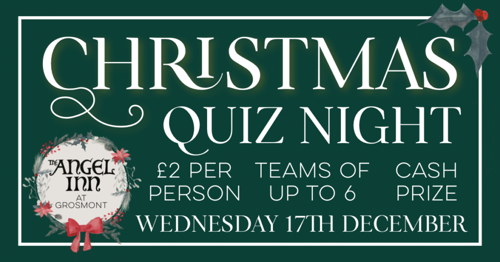 This Christmas Eve we will be serving a delicious, three course dinner menu full of festive goodies, from 6:30pm – 8:30pm. As is traditional, the festivities will undoubtedly continue late into the evening as we celebrate “the Grosmont way”! We will be open from midday for anyone wanting to make a day of it!