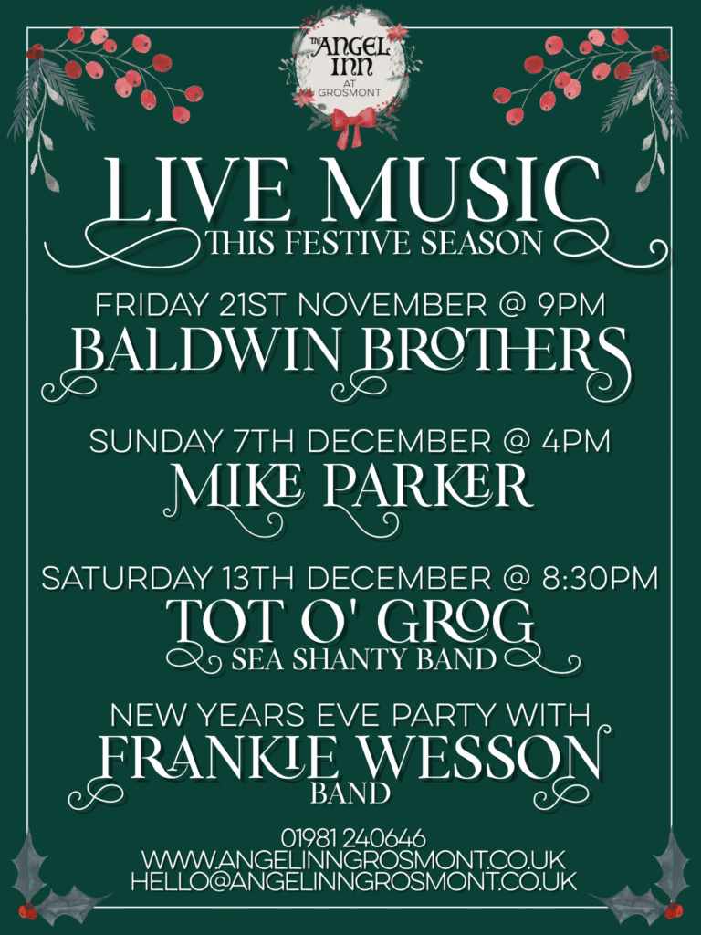 This festive season, we welcome back some old favourites and a new Sea Shanty experience to The Angel for your musical enjoyment. Get down early on any given day to ensure you get a great seat and reserve your spot on the dancefloor!